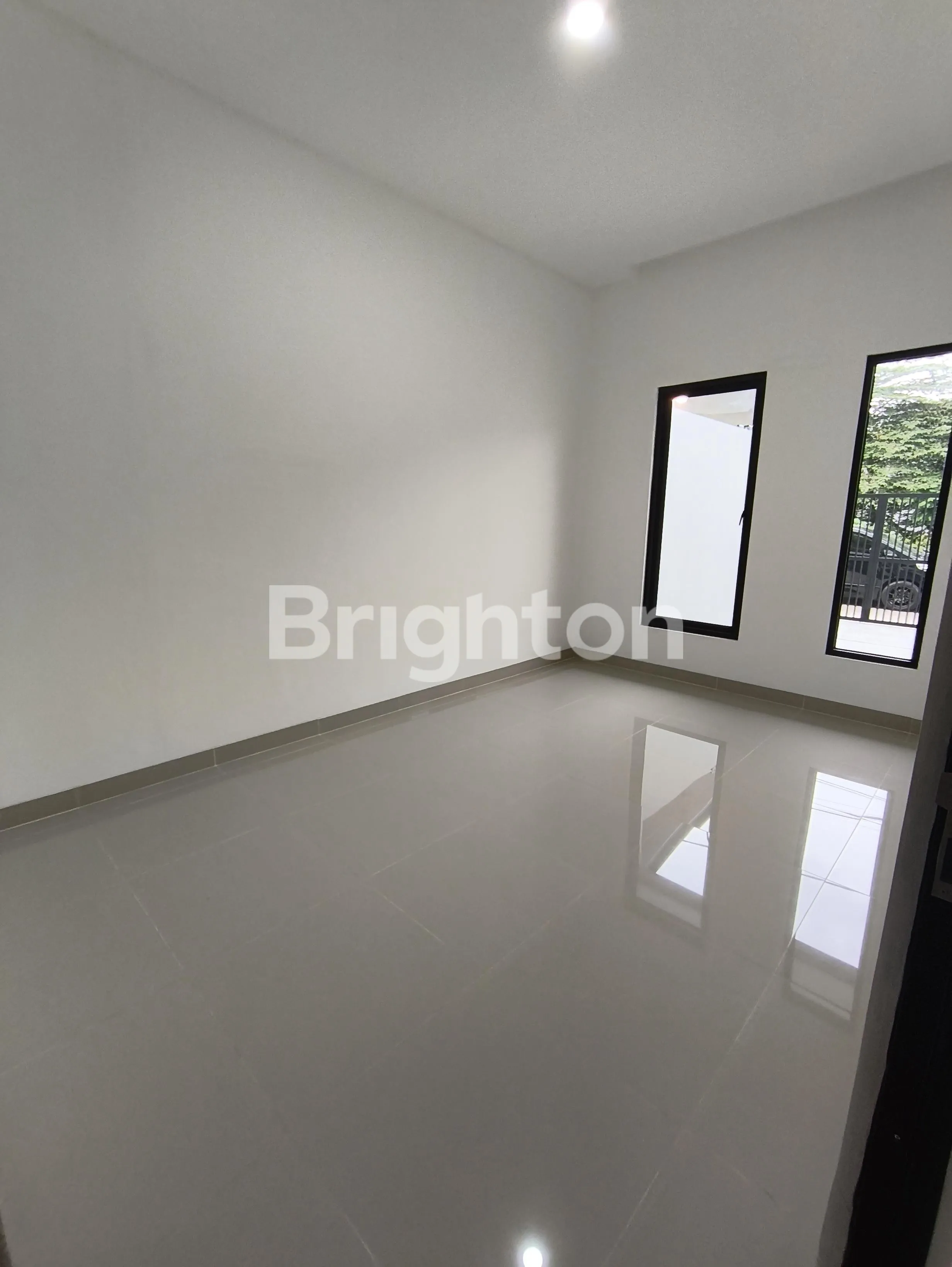 Rumah Baru 2 lantai siap huni, dimensi 5 X 23 , kamar tidur 4+1 , kamar mandi 3+1 , listrik 3500 watt, air tanah, hadap Timur, sertifikat SHM, dekat ke Puri, sekolah, RS, kampus, gerbang Tol
