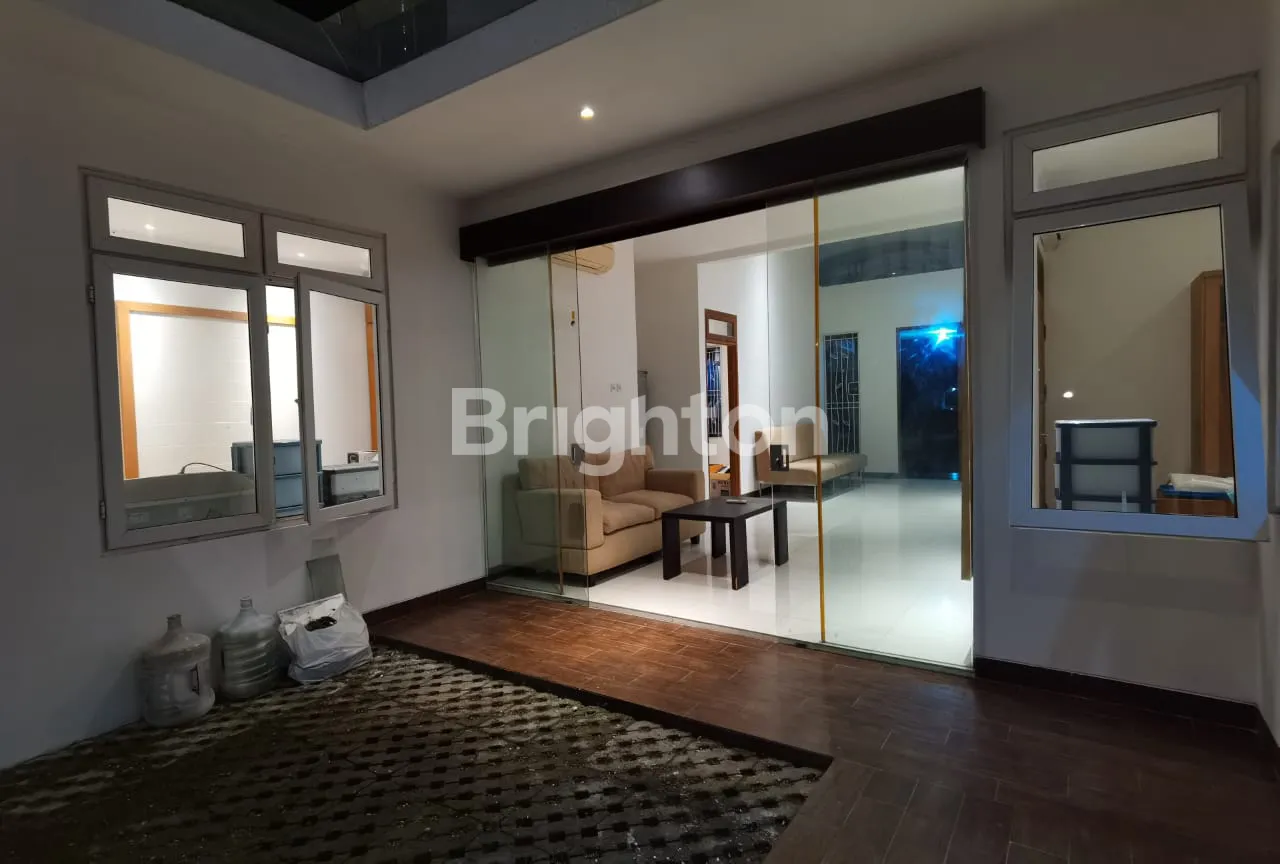 Halaman belakang rapi, atap tempered glass