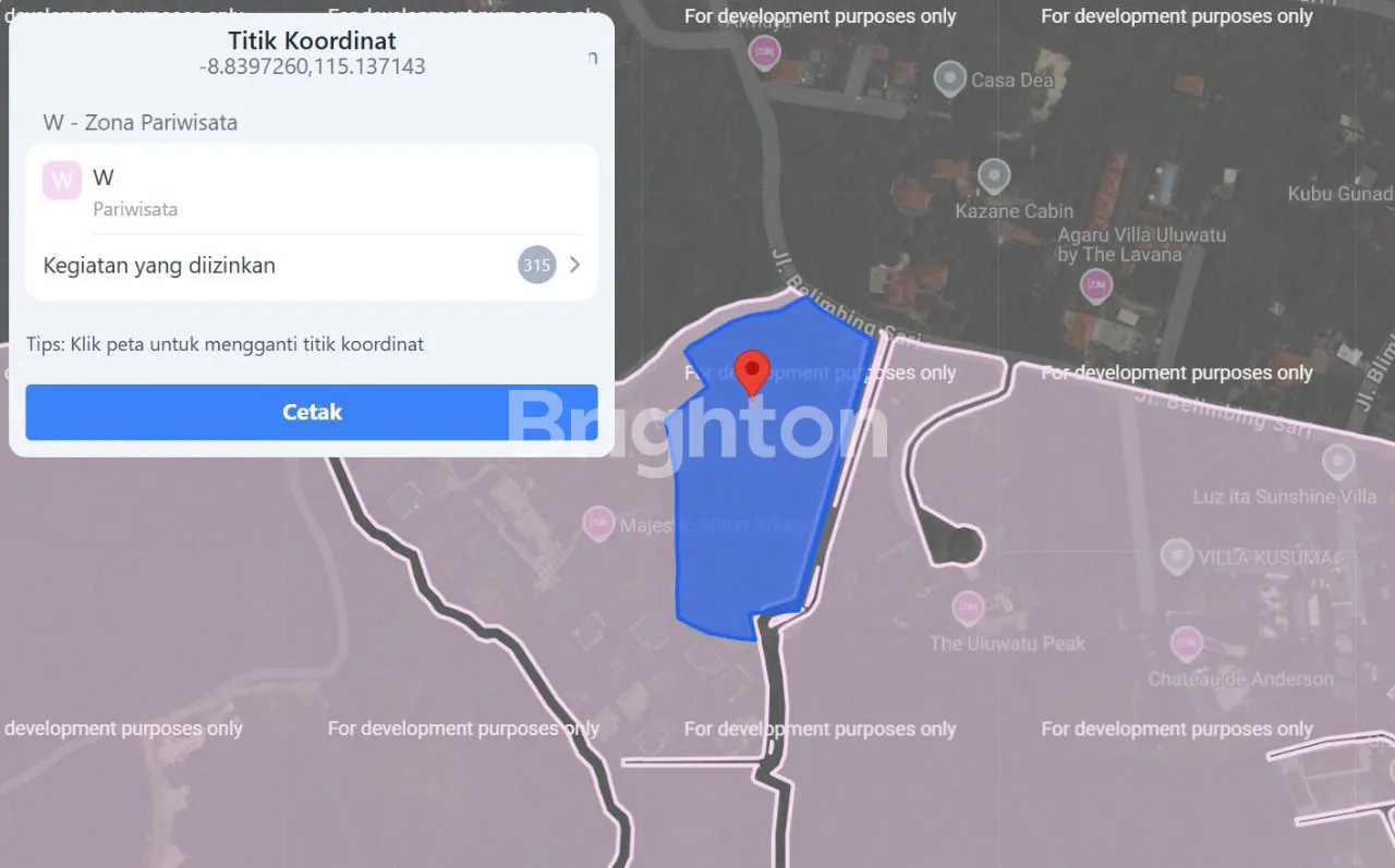 TANAH OCEAN VIEW DI JALAN UTAMA BELIMBING SARI, PECATU - BALIKAN