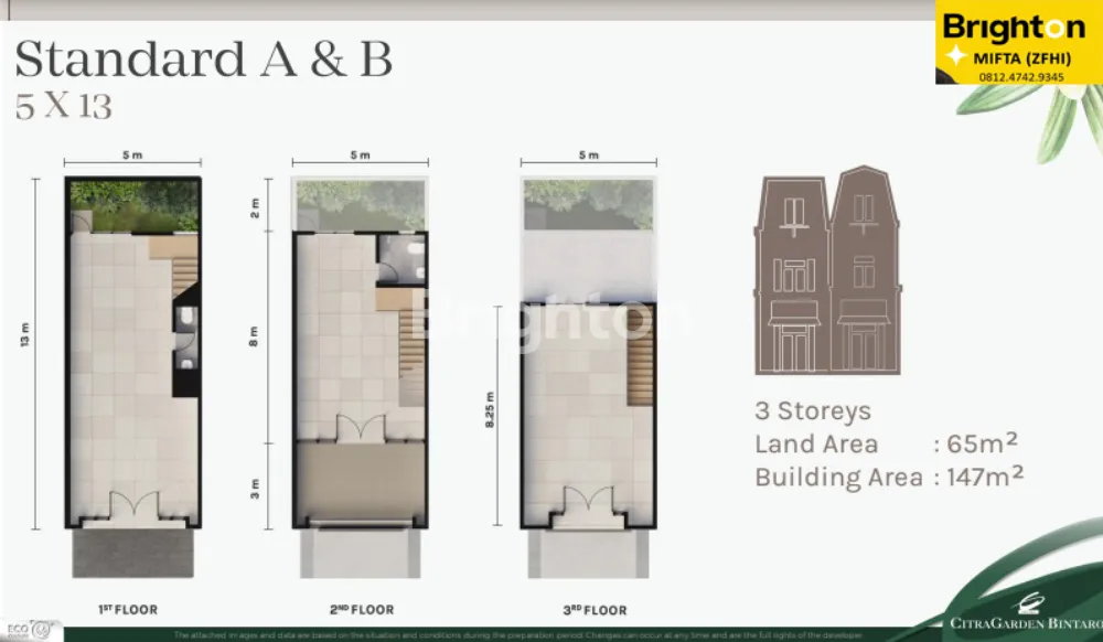 5x13. LT 65 ,LB 147, (3 Lantai)