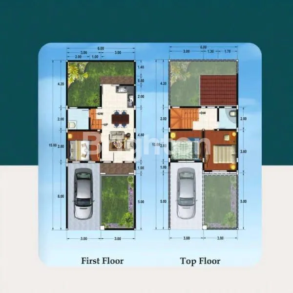 Rumah baru 2 lantai dengan 3 kamar tidur & 2 kamar mandi, hadap Timur — membuat rumah selalu terasa hangat dan terang setiap pagi.