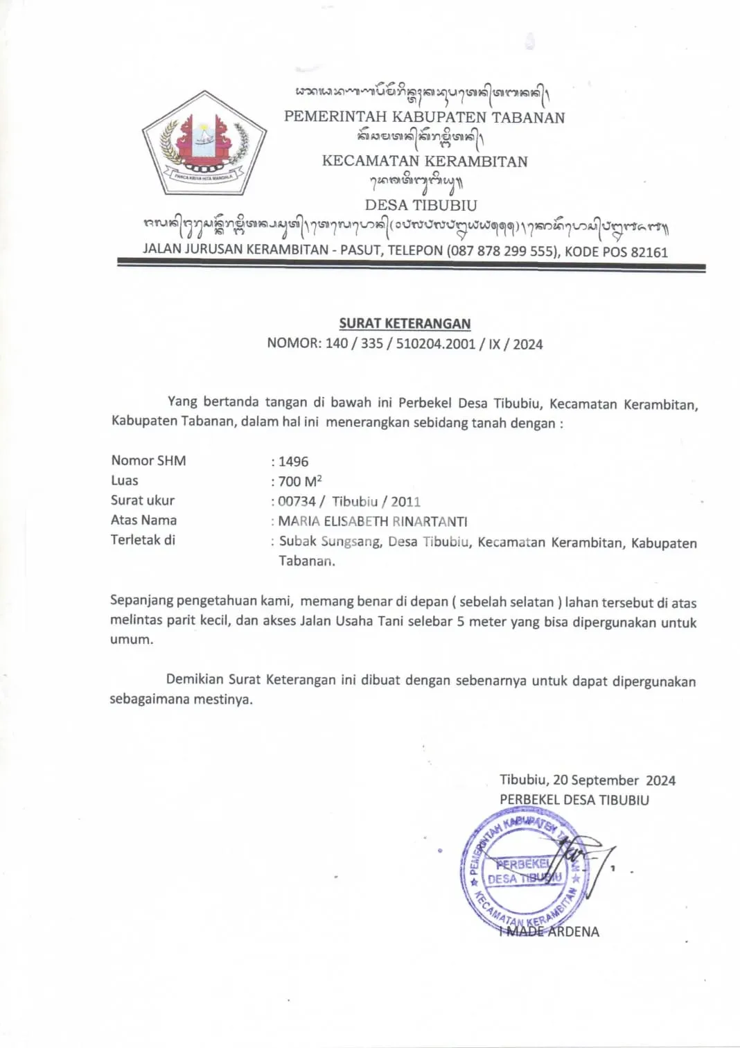 DEKAT TIBUBIU, KEC. KERAMBITAN, KABUPATEN TABANAN, BALI