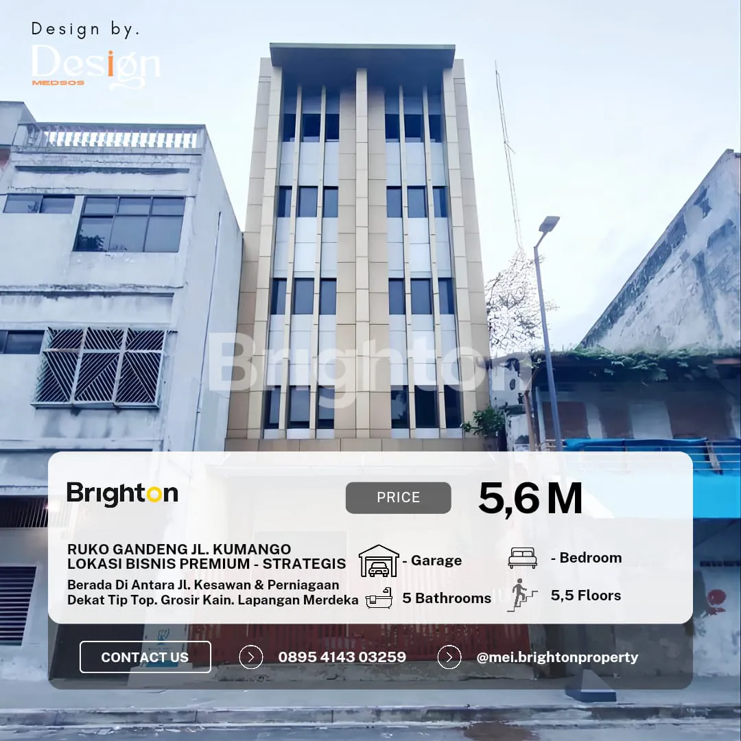 RUKO GANDENG 5,5 TINGKAT , JALAN KUMANGO TITIK LOKASI BISNIS PREMIUM - SUPER STRATEGIS - INTI KOTA MEDAN