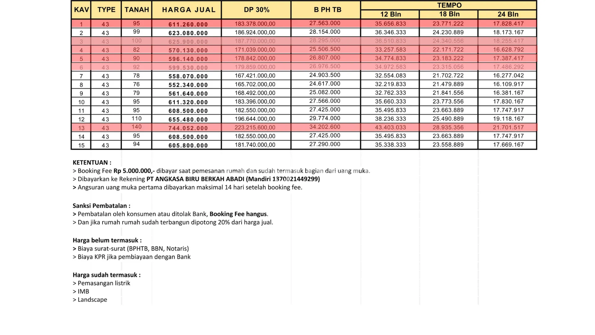 Bagi yang berminat, silakan segera memilih unit yang masih tersedia sebelum habis. Informasi lebih lanjut mengenai tipe rumah, harga, dan lokasi dapat kami kirimkan melalui chat ini.