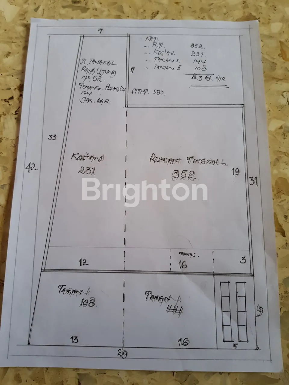 Luas 352 m + tanah kosong 144 m