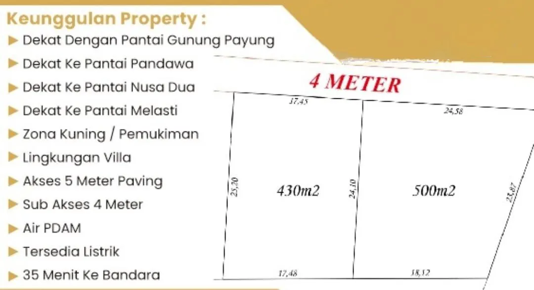 Terdiri dari 2 SHM 430m2 dan 500m2 dapat ambil salah satu.