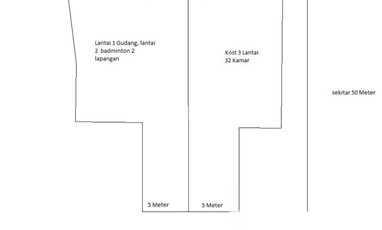 Ruko strategis di Jl. A Yani, hadap selatan. Luas bangunan 1.700 m², tanah 1.040 m², 2 lantai. Fasilitas lengkap: 28 KT, 30 KM, listrik 3.500 watt, bebas banjir. Dilengkapi kos-kosan 24 pintu & lapangan badminton. SHM.
