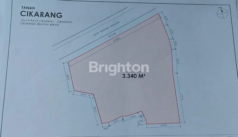 C076 - DIJUAL TANAH DI JL. CIBARUSAH, CIKARANG BEKASI 3.340 M2, KDB 70%, KLB 6