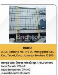 Dijual Ruko 3 lantai di Jl. Dr Saharjo, Manggarai Selatan, Tebet. Jakarta