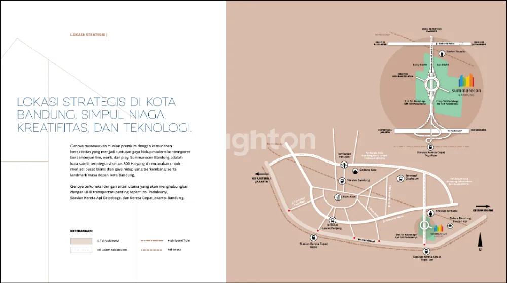Genova dibangun seluas 300 HA yang direncanakan menjadi pusat bisnis dan gaya hidup yang berkembang seta landmark masa depan kota Bandung