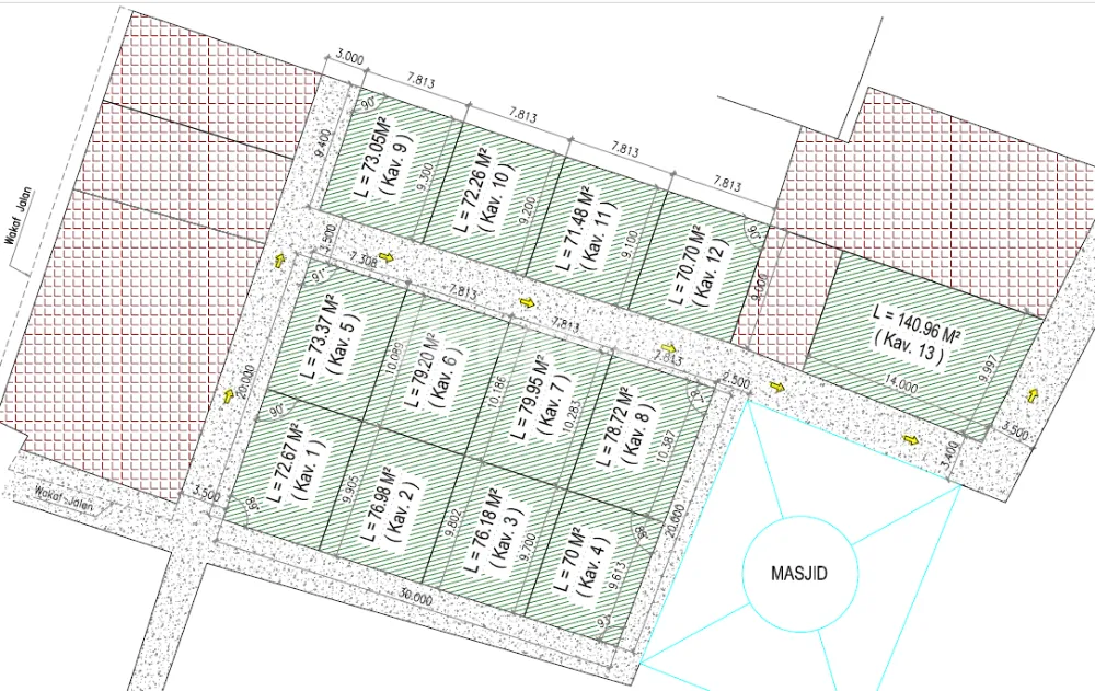 Kavling Nomor 13: Luas Tanah 140.96 M² dengan Harga Jual Rp. 750.000.000,-