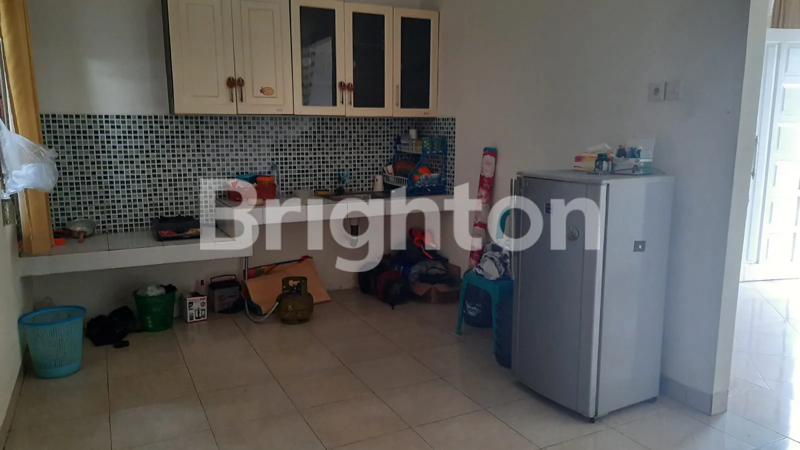 Rumah depan isi 1 KT ukuran 3x4, 1 KM, ruang tamu, dapur dengan kitchen set, listrik 1300 ada parkiran mobil dan pagar.