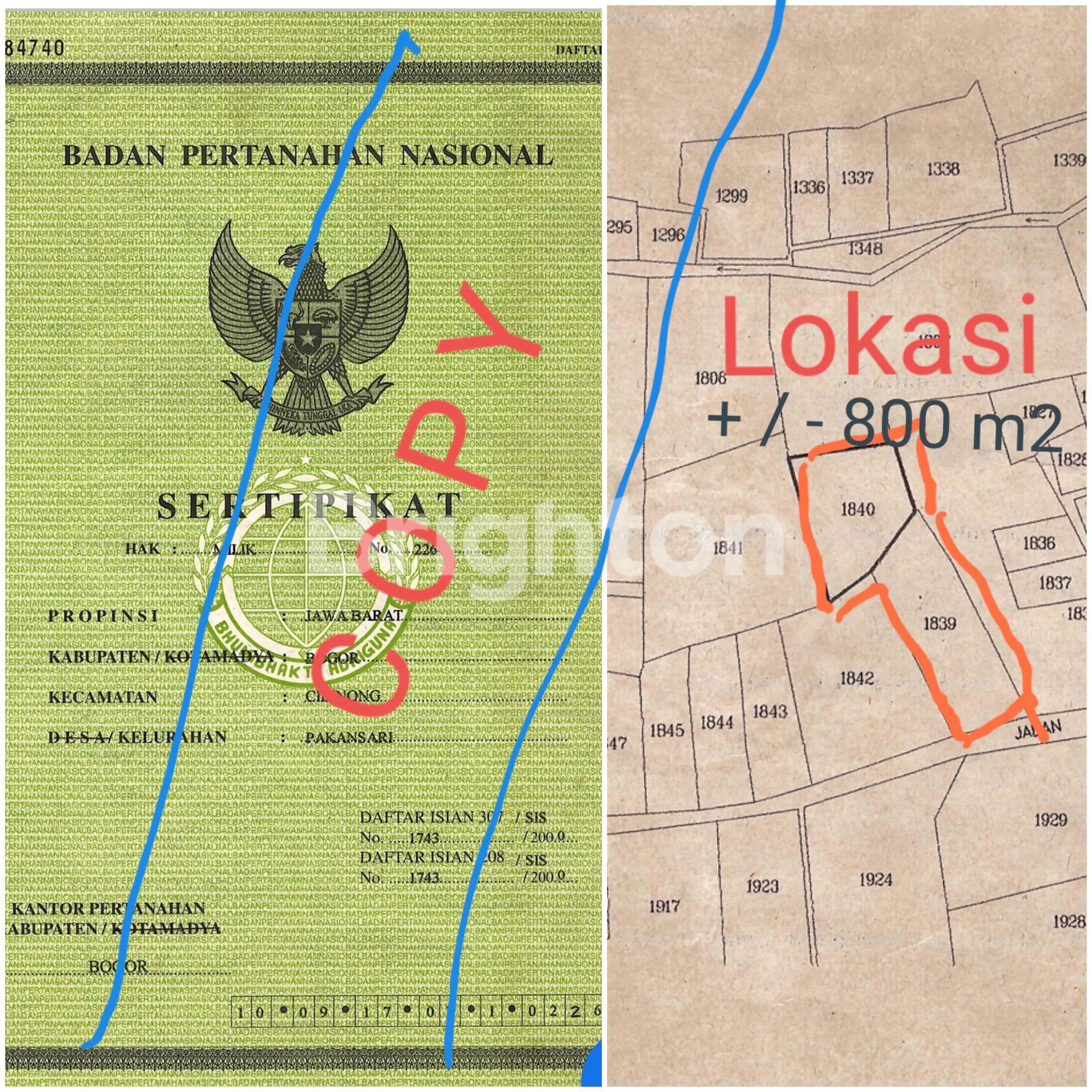 JUAL JL. PERJUANGAN, KAMPUNG CURUG, PAKANSARI, CIBINONG