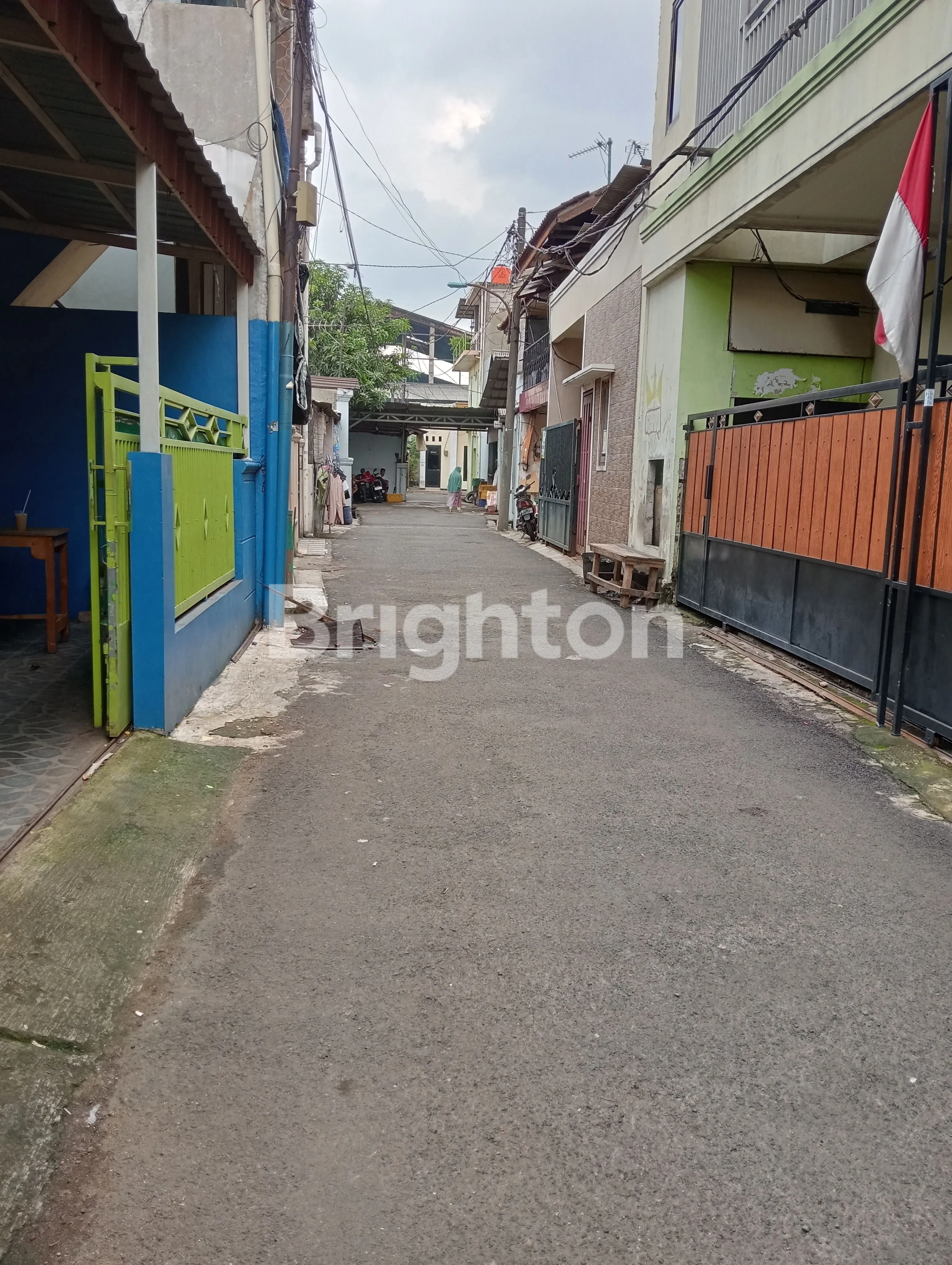 rumah di dalam perkampungan, 2 lantai, 50 meter ke jalan angkot, depan dilalui 1 mobil, parkir bisa 2 mobil, dekat dengan industri, lingkungan aman.