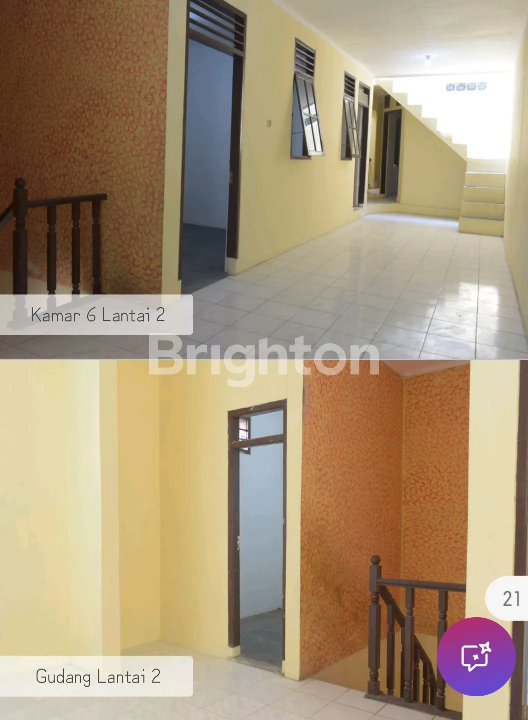 Kamar di Lantai atas 4 yg 2 besar, kamar atas menghadap ke jalan ada kamar mandi di dalam .