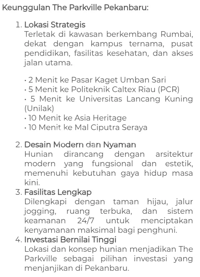 Lokasi strategis dekat Politeknik Caltec Riau (PCR) dan Universitas Lancang Kuning