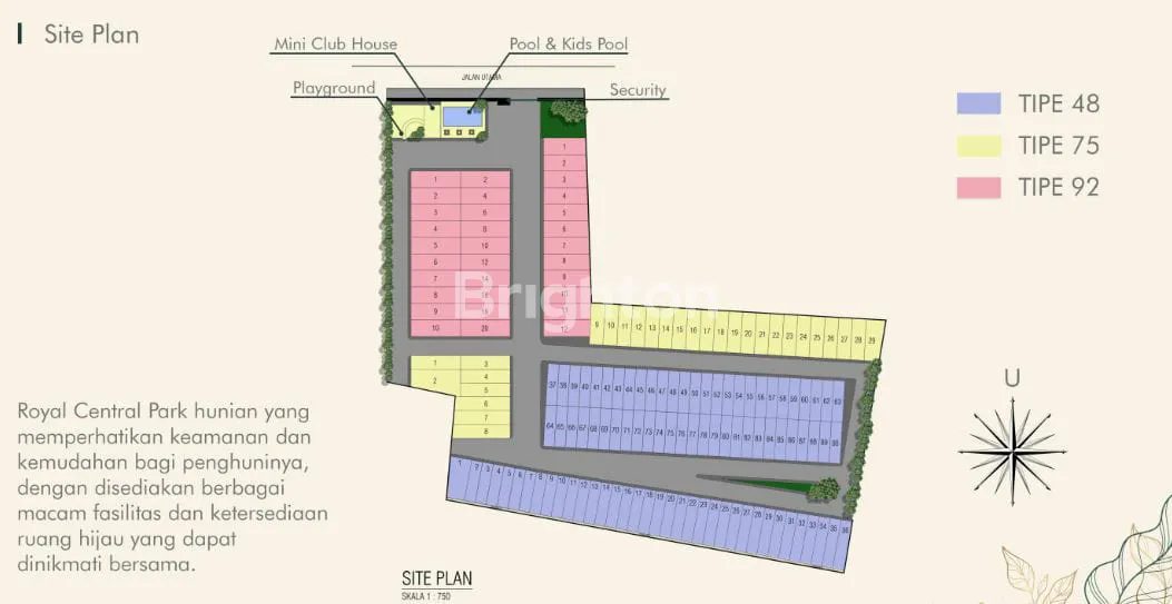 Royal Central Park hunian yang memperhatikan keamanan dan kemudahan bagi penghuninya, dengan disediakan berbagai macam fasilitas dan ketersediaan ruang hijau yang dapat dinikmati bersama. Dekat dengan berbagai Fasilitas umum seperti :