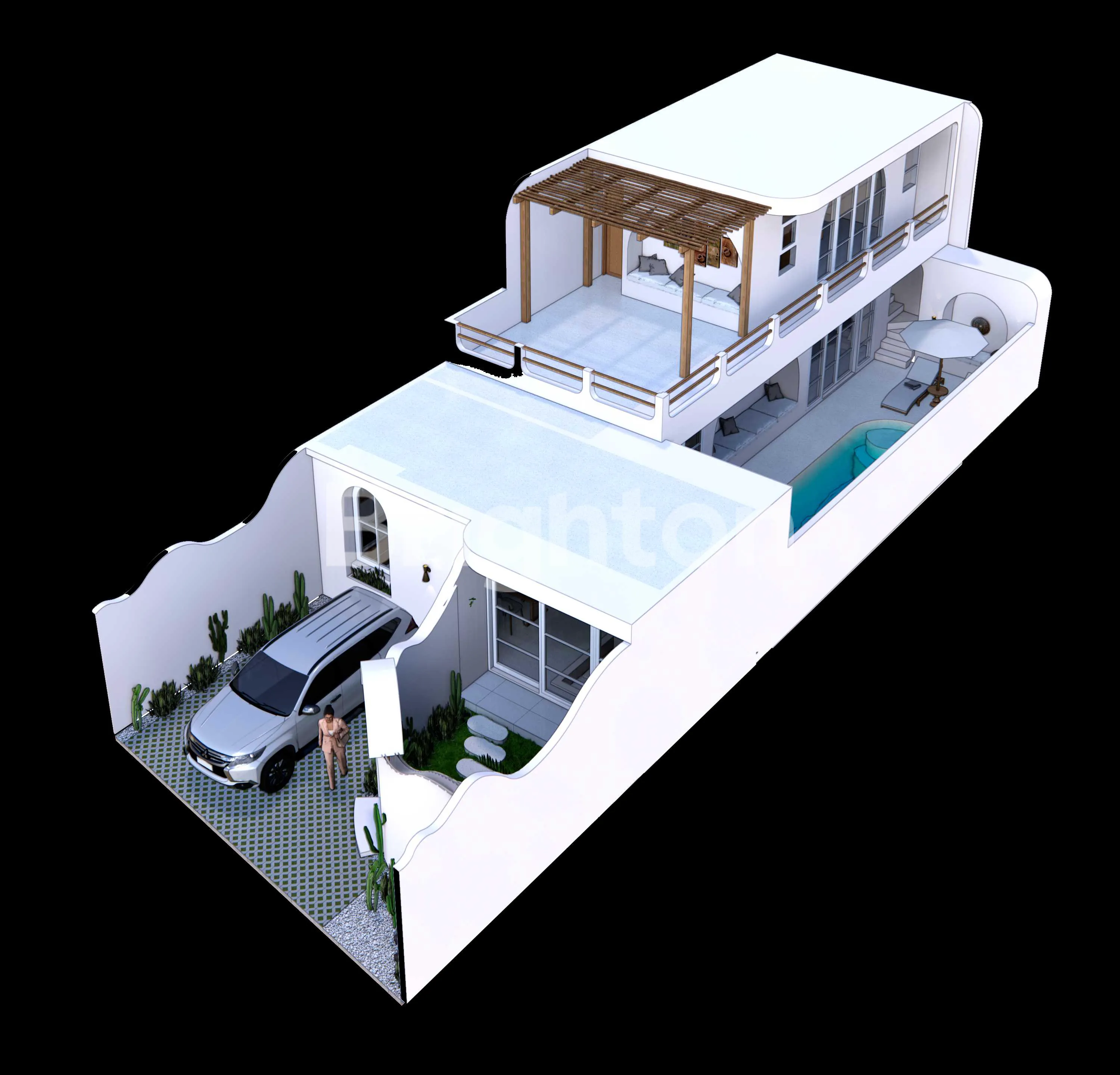 Bangunan 2 Lantai dengan rooftop konsep Mediterania Villa