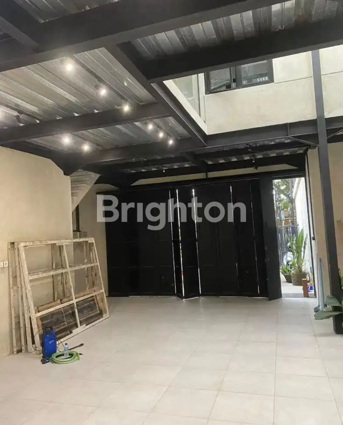 Bangunan baru dengan arsitek bertema industrial memakai besi IWF kondisi di siang hari terang dan tetap adem di siang hari dengan jendela yang banyak