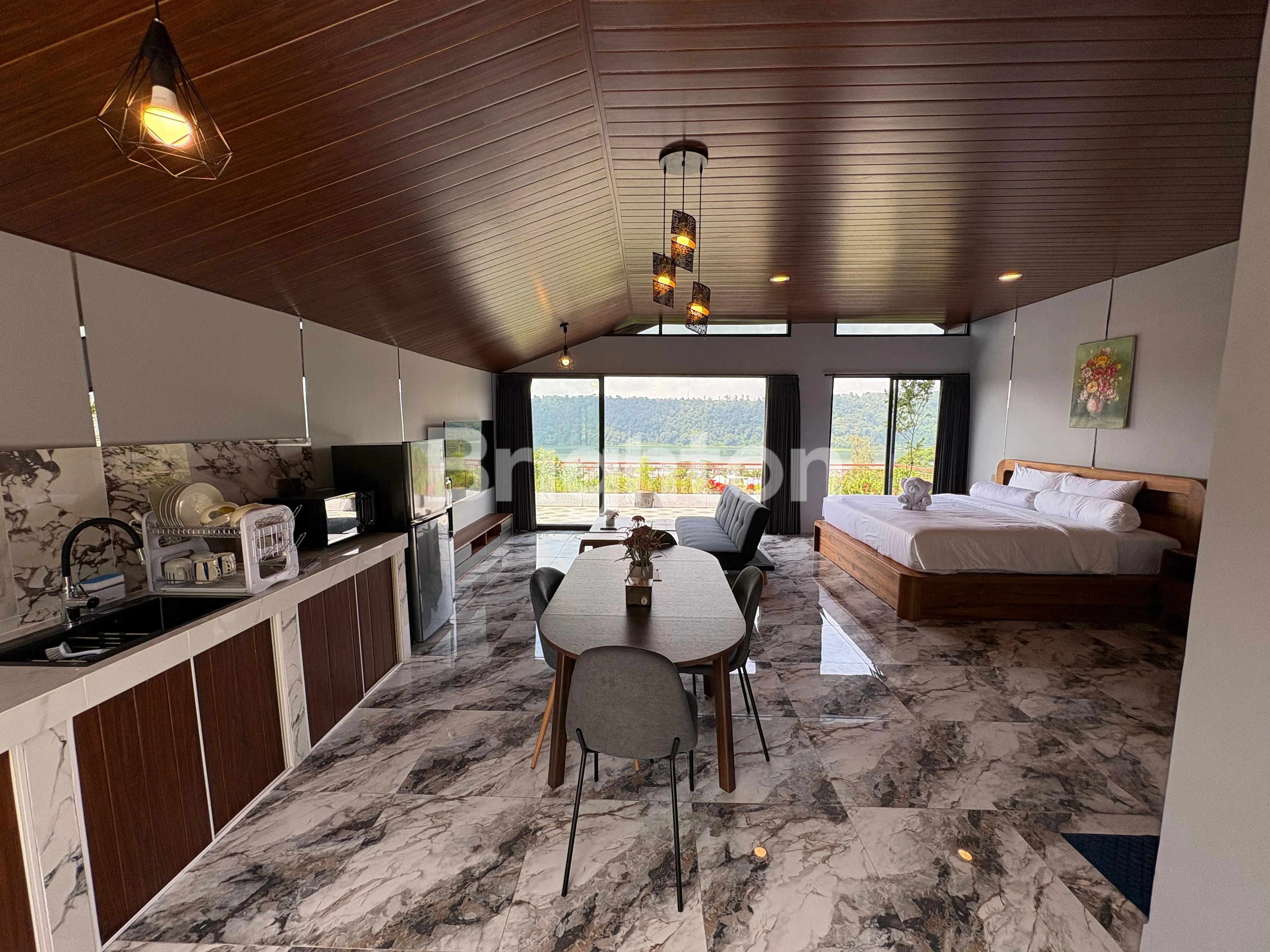 • 1 kamar tidur besar di lantai atas, full furnished, dengan pemandangan danau
