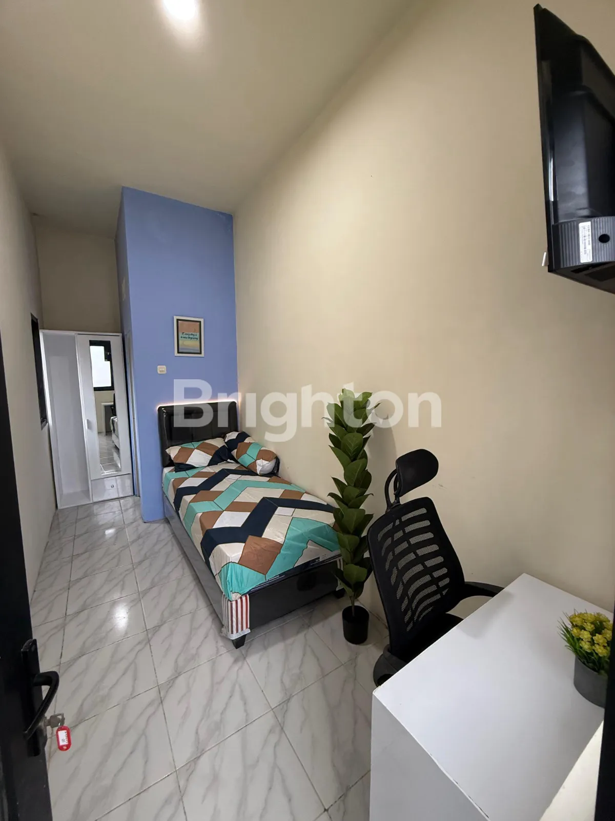 🏘️ Fasilitas kamar set : premium springbed, lemari, meja belajar, kursi gaming, ada AC, ada water heater air panas, dan ada TV.