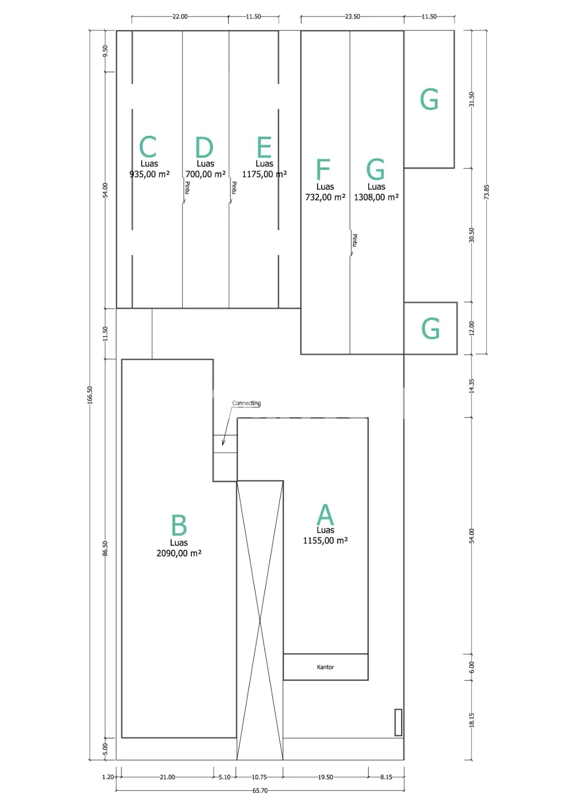 Luas tanah : 2.090,33 m² (Gudang B)