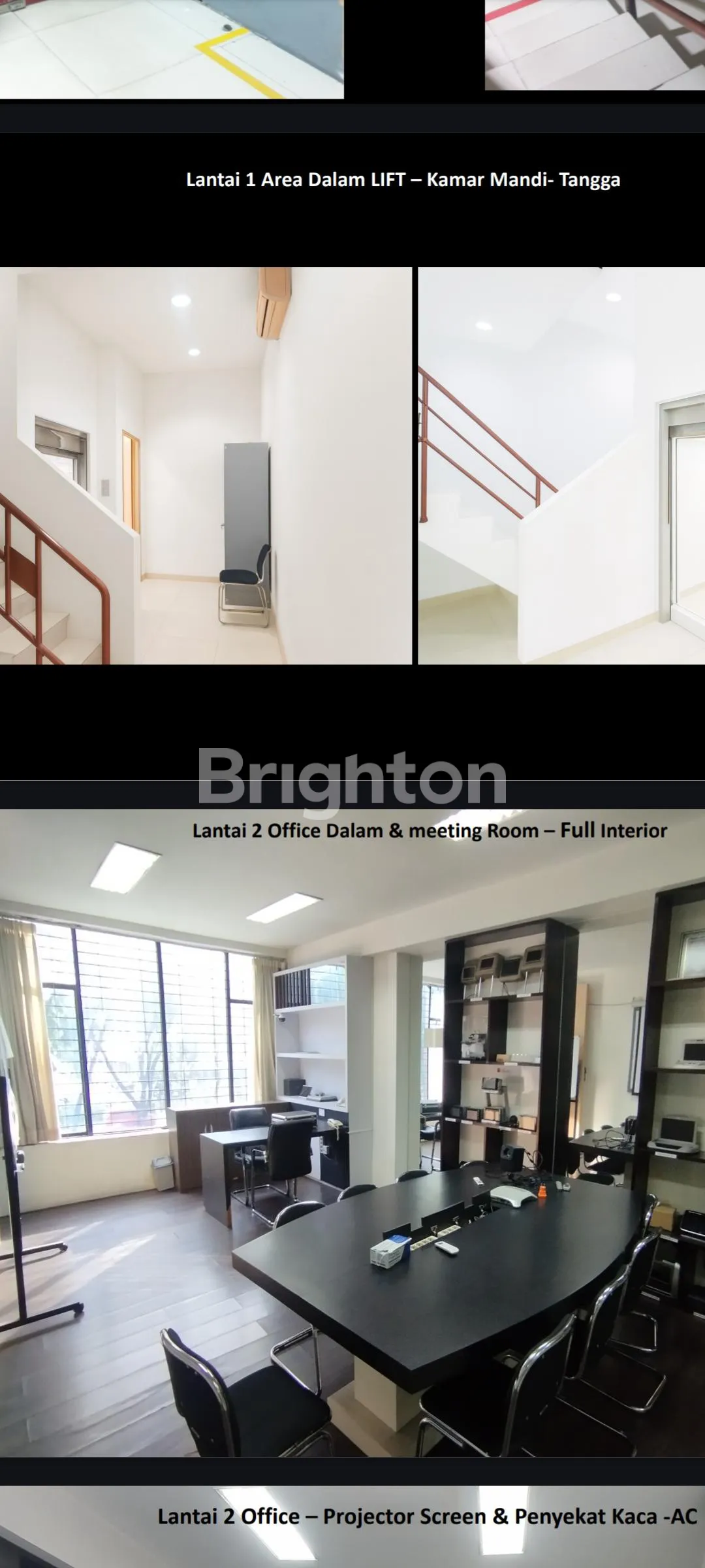 -Ruangan AC lantai 1-4(lt 2 dengan 2 ac,lantai 3 dengan 1 ac, lantai 4 dengan 1 ac,listrik 33.000 watt,PAM,telefon,PABX,full interior dgn penyekat kaca