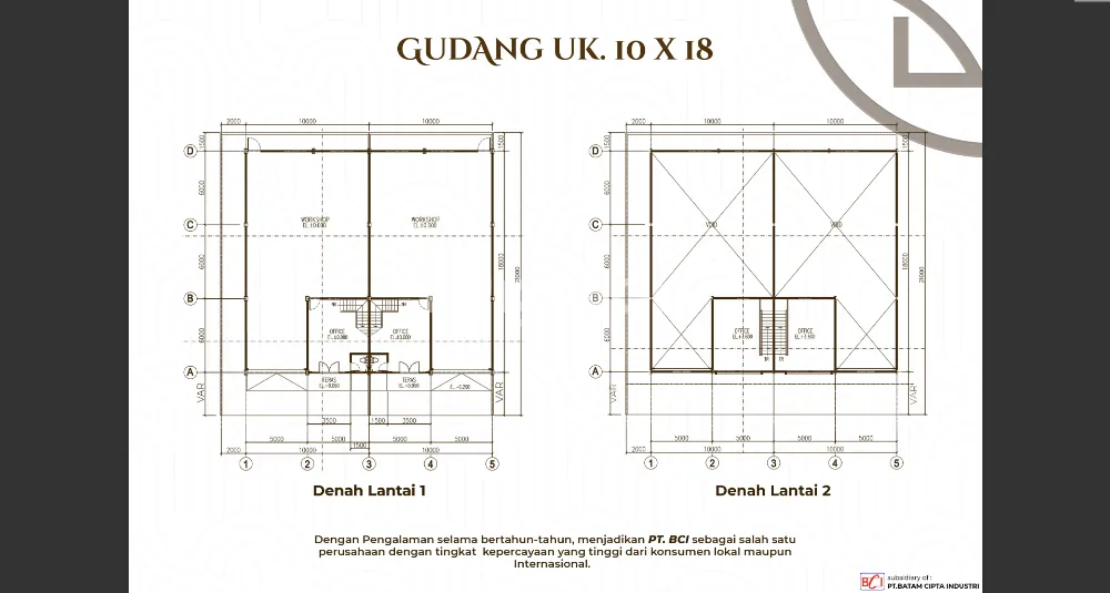 Pergudangan dengan Ukuran Kav 10 x 21 - Bangunan 10 x 18 Office 2 Lantai)