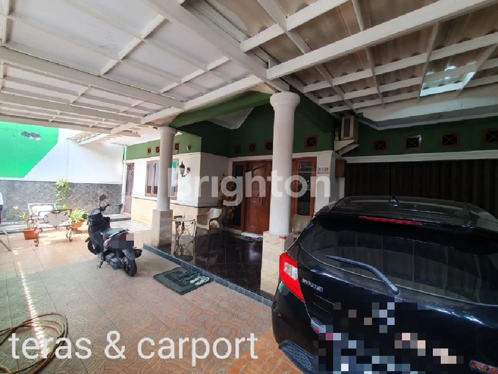 - Lantai carport + teras sudah keramik sampai pagar depan