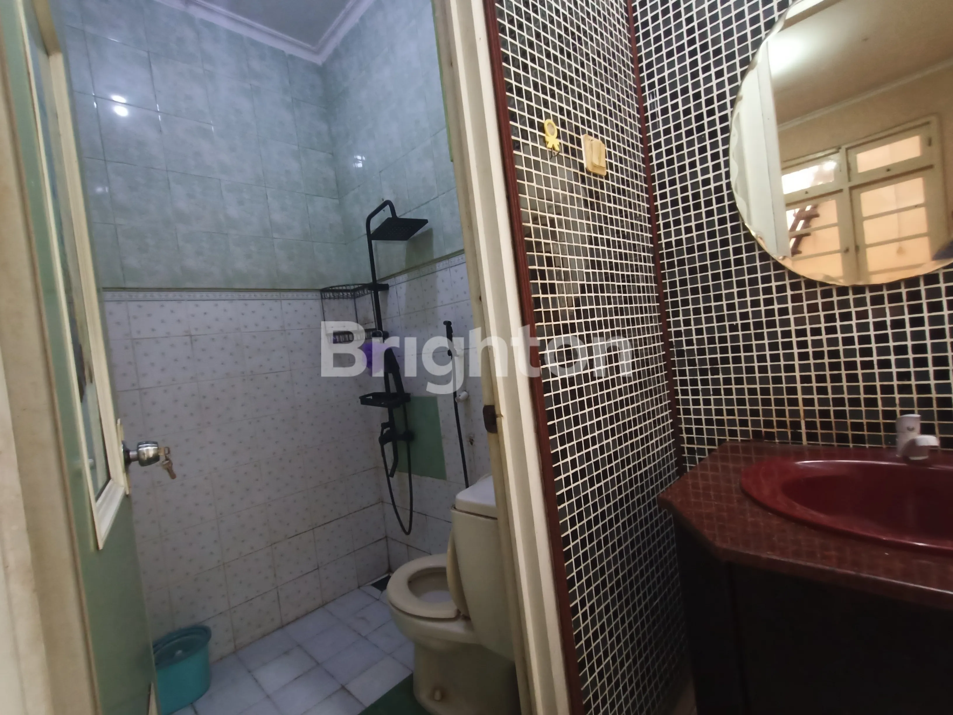 Dapur sudah terpasang kitchen set, kamar mandi bersih dengan shower dan wastafel.