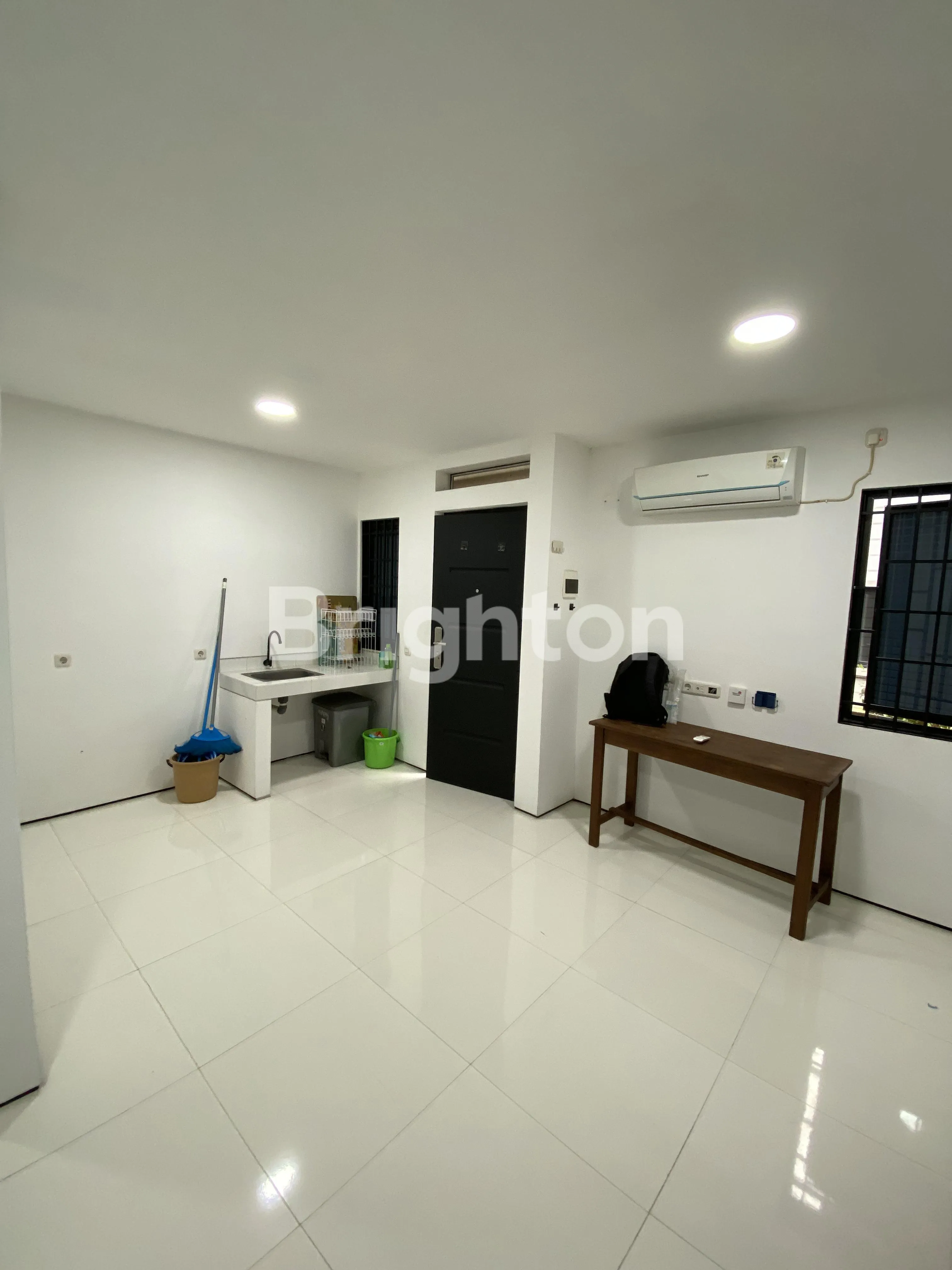 Furnish : AC 1, Waterheater 1, Mini Kitchen set, Tempat Tidur, Meja Belajar, Kursi, Alat-alat pembersih rumah.