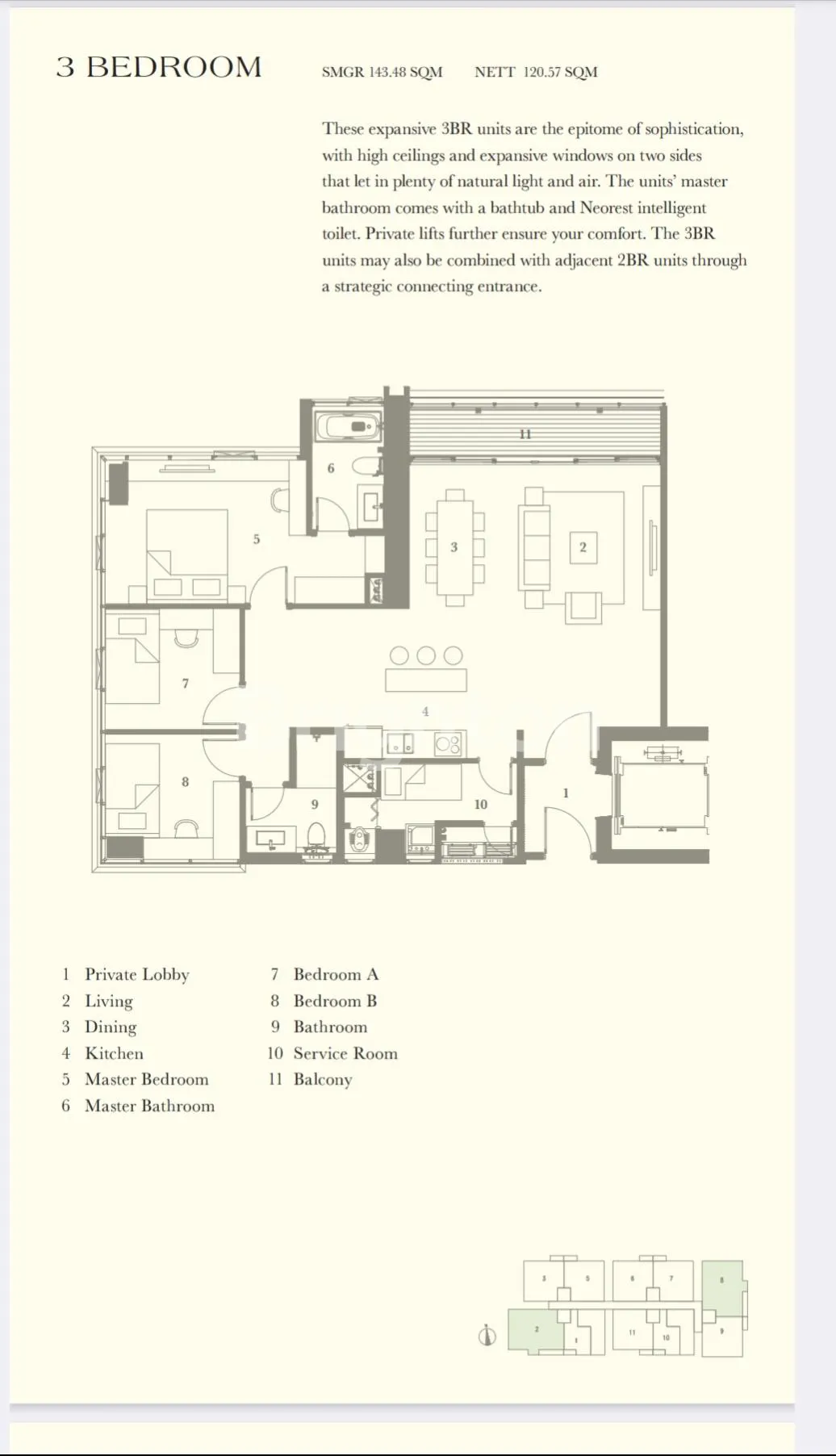 • 3 BR + 1 BR maidroom (± 143 m²)