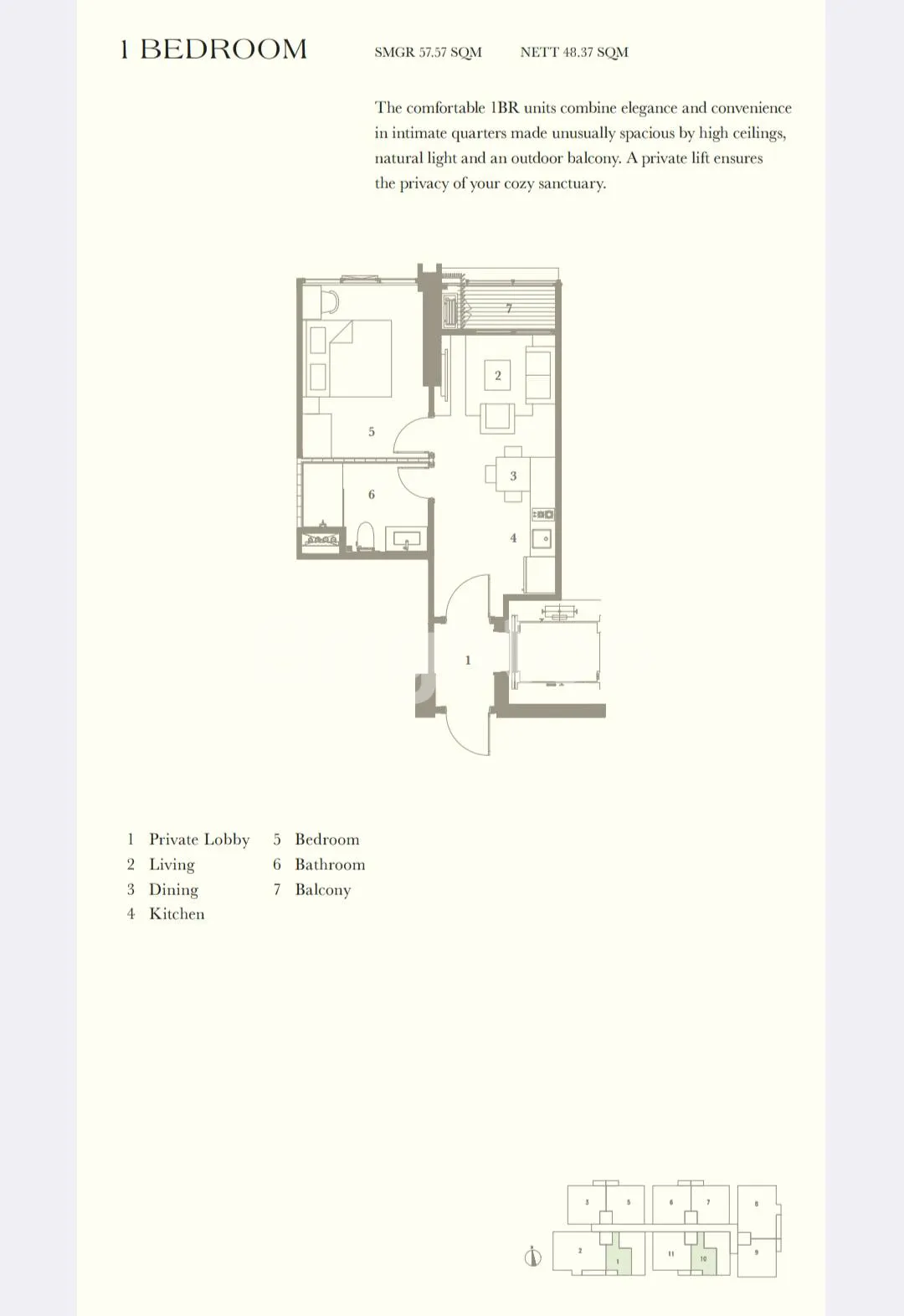 • 1 BR (± 57,5 m²)