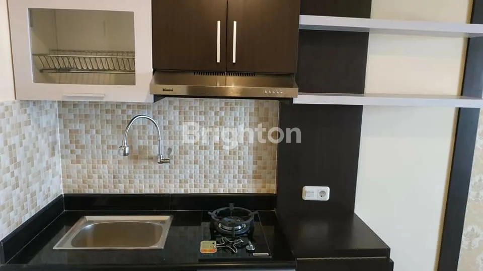 Full Furnish, kitchen set + kompor listrik, meja makan + peralatan makannya + galon air, dispenser, kulkas, TV, AC.