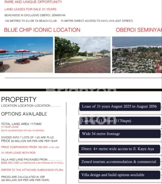 *Premium Land for Sale in Oberoi Seminyak Bali*