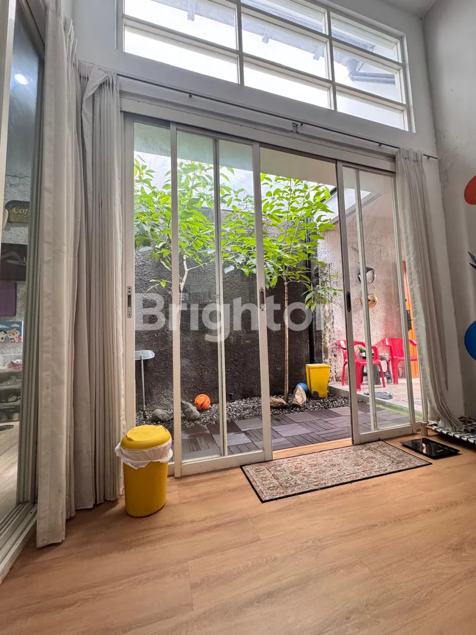 - Lantai semua Vinyl, pintu masuk ruang tamu smart doorlock, ada Taman kering dengan pohon Tabebuya pink dan putih di dalam rumah