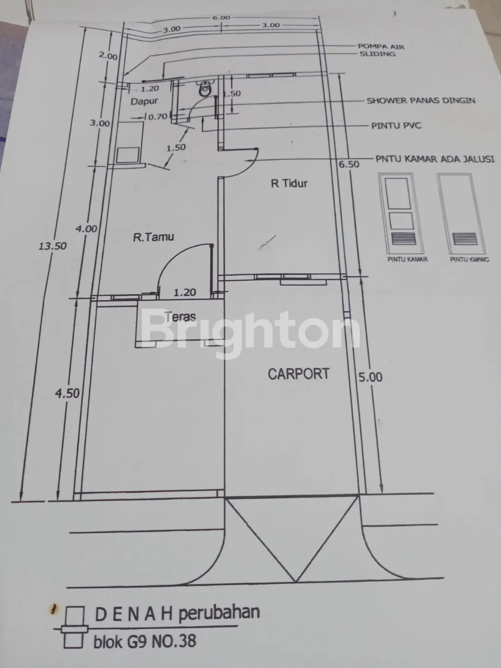 Rumah sudah renovasi, kamar tidur dan ruang tamu luas, pintu kamar ada jalusi