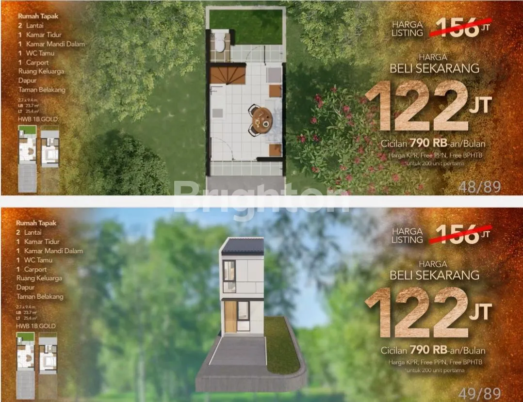 Cicilan Rp600rb/bln flat 40 bln, tenor 20 thn, bebas PPN/BPHTB.