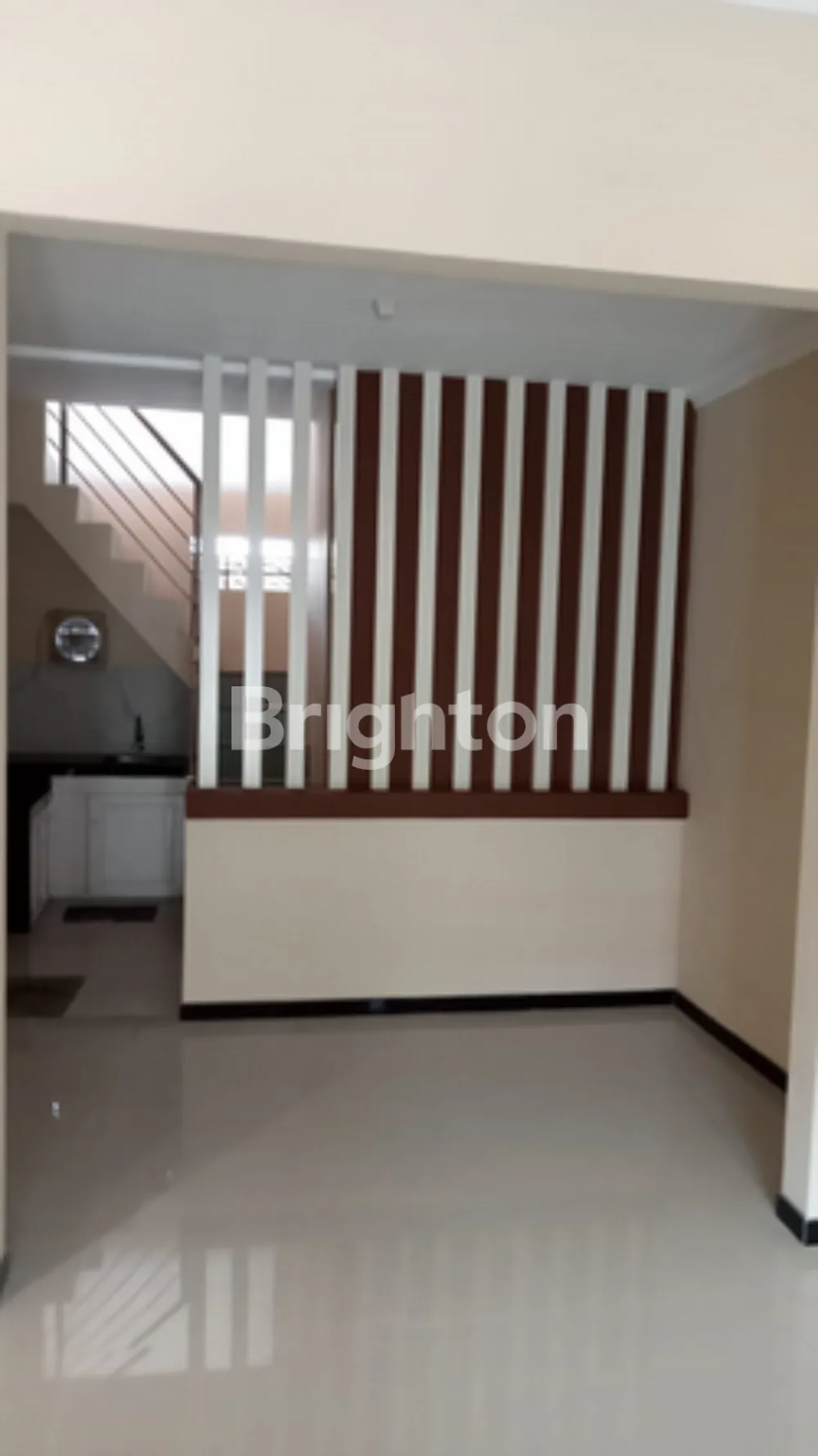 - Desain Modern Minimalis: Interior didesain dengan partisi kayu yang stylish, menciptakan ruang tamu dan dapur yang rapi.