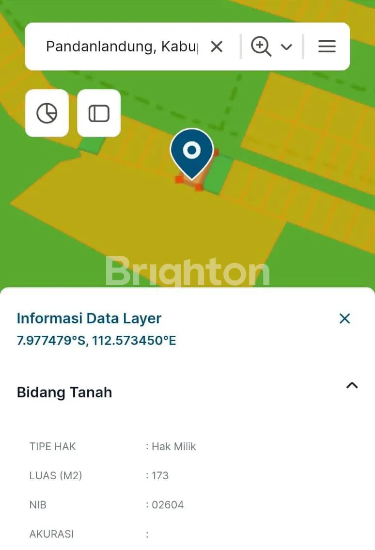 Luas tanah 173m2 cocok untuk investasi.