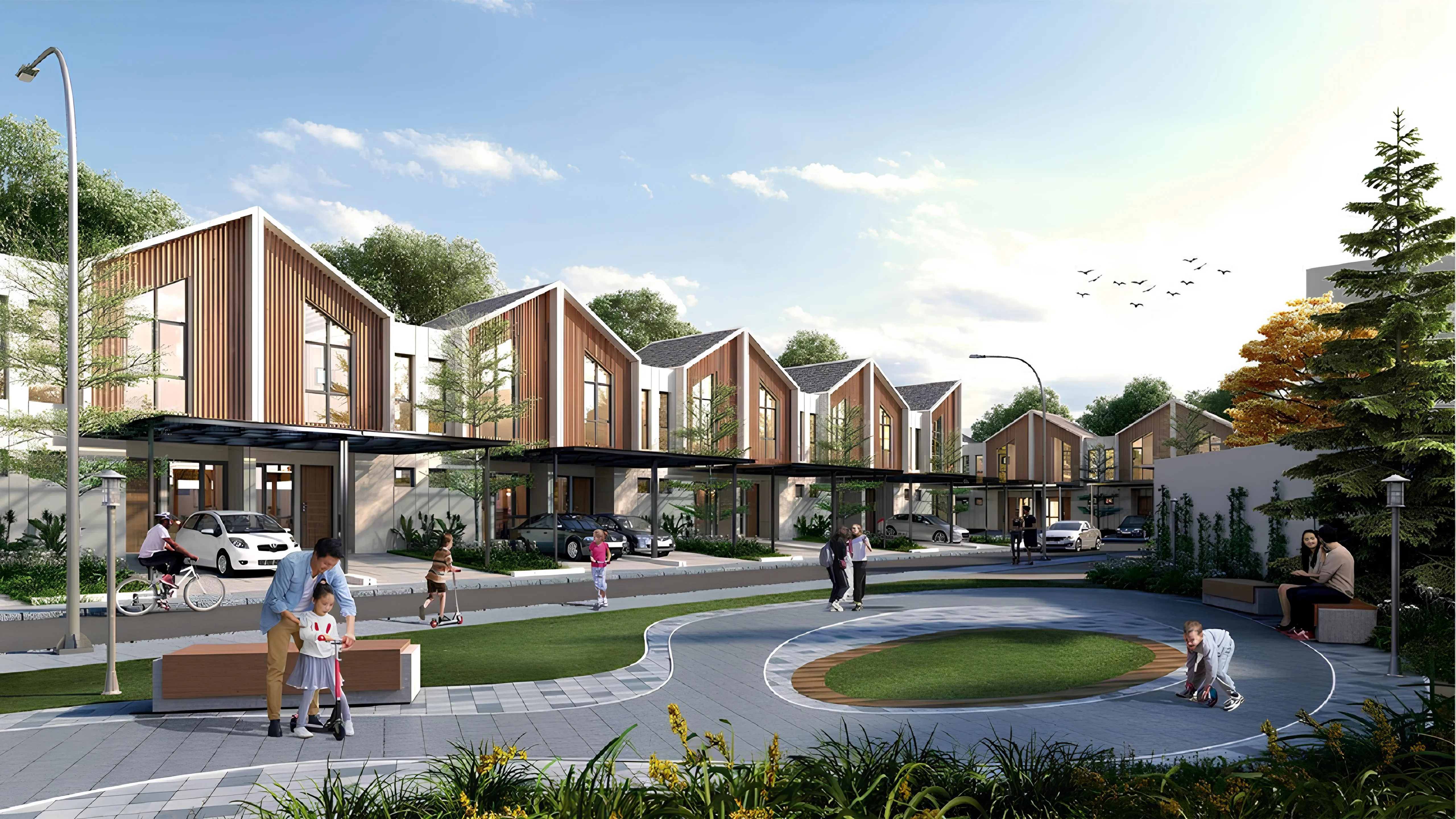 Taman hijau luas dan lingkungan pedestrian-friendly