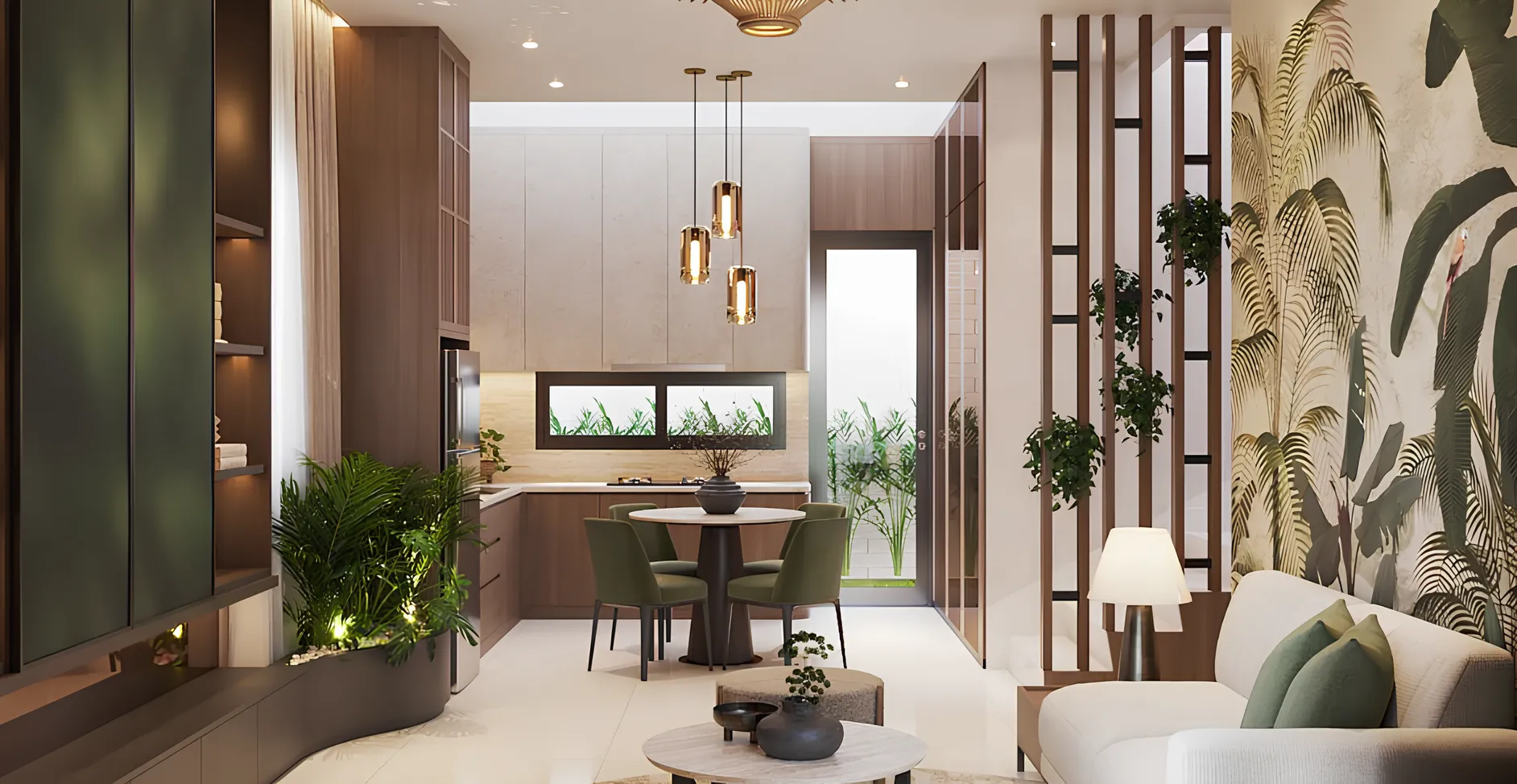 Konsep Modern Tropical Architecture yang menghadirkan suasana alami dan pencahayaan alami optimal.