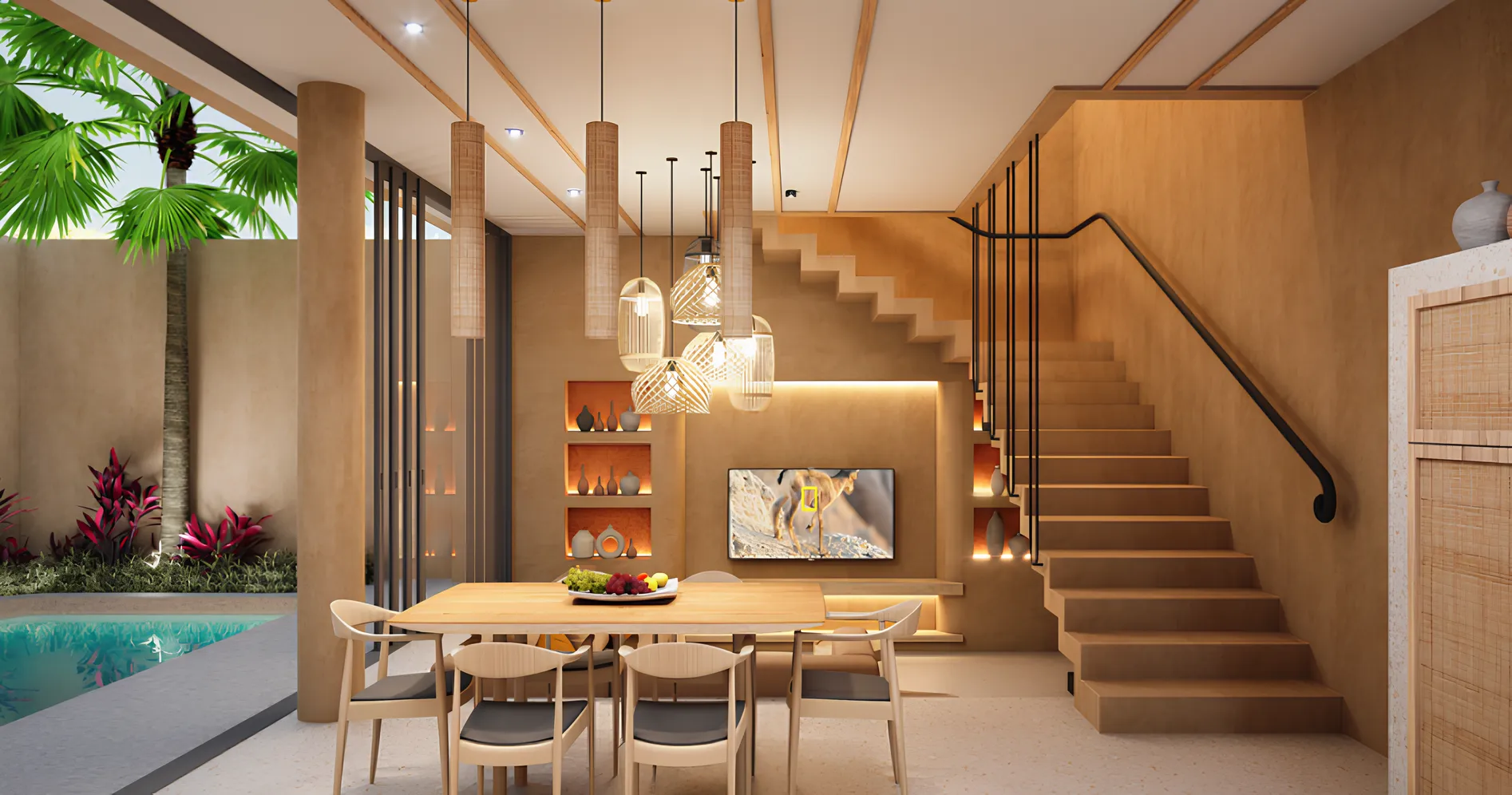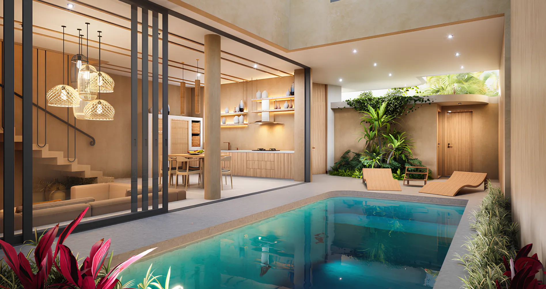 - Finishing modern tropis dengan standar villa premium