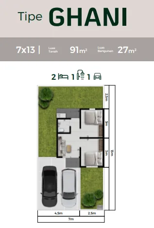 Produk hunian: tipe Sahir (LT 72,5 m²) dan Ghani (LT 91 m²).