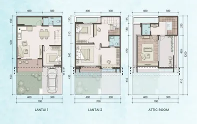 Rumah-rumah di cluster ini dirancang dengan pencahayaan alami dan sirkulasi udara optimal. Tersedia opsi attic yang menyatu dengan balkon dan akses indoor-outdoor, menjadikan rumah lebih fleksibel dan bernilai tambah.