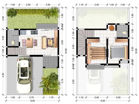Cocok untuk keluarga kecil dengan kebutuhan ruang yang compact. - Tipe 6 x 10 m