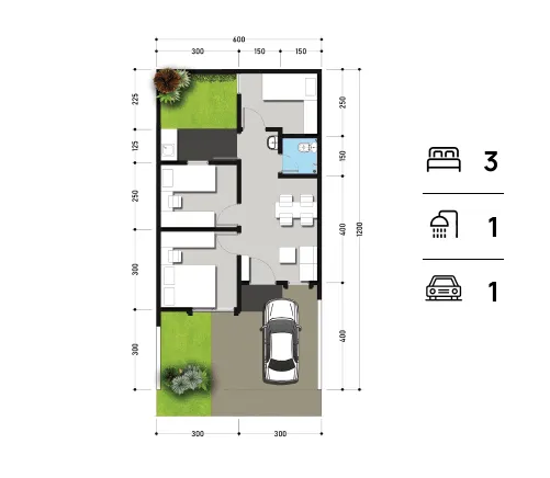 Pilihan tipe rumah (tipe 39/72 & 46/72) sesuai kebutuhan keluarga