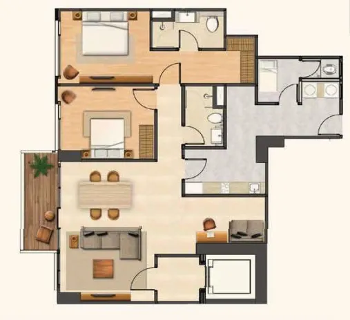 2 Bedroom: 111 – 137 m² nett
