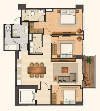 3 Bedroom: hingga 145 m² nett
