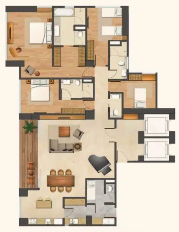 4 Bedroom: hingga 258 m² nett